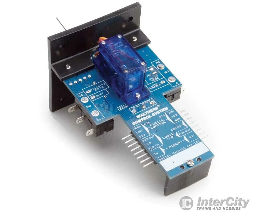 Walthers Layout Control System brings you a low-cost solution for easy turnout control for HO, N, Z, S, and O Scale layouts! The system is expandable at any time to grow with your layout, and can be used with DCC- or DC-power – and switch machines feature optional DCC operation. The The system uses plug-and-play servo-style wiring with connectors, so no soldering is needed; two styles of cables are available separately to expand your wiring as needed. User-friendly instructions are included with all items, and drilling templates for easy mounting on your layout or fascia are included as appropriate. Using combinations of the system components, which include a servo-based slow-motion Switch Machine, Power Distribution Block, LED panel indicator-control pushbutton switches, add-on system cabling, a 2-amp 12V Filtered DC Power Supply and a three-piece drill set, you can easily build a complete control system.