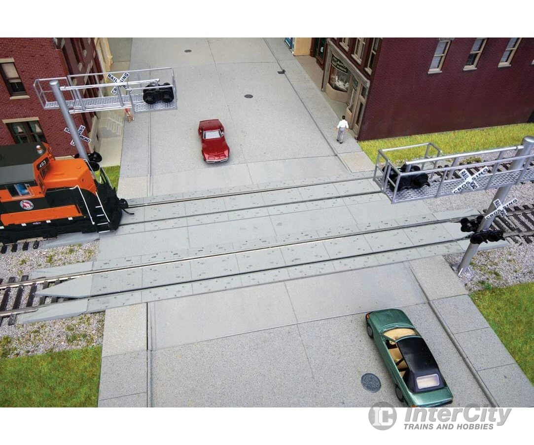 Keep your HO trains on track and rolling with the WalthersTrack Modern Grade Crossing kits with Rerailer Ends. Easy to assemble and install along any straight stretch of track, features include: