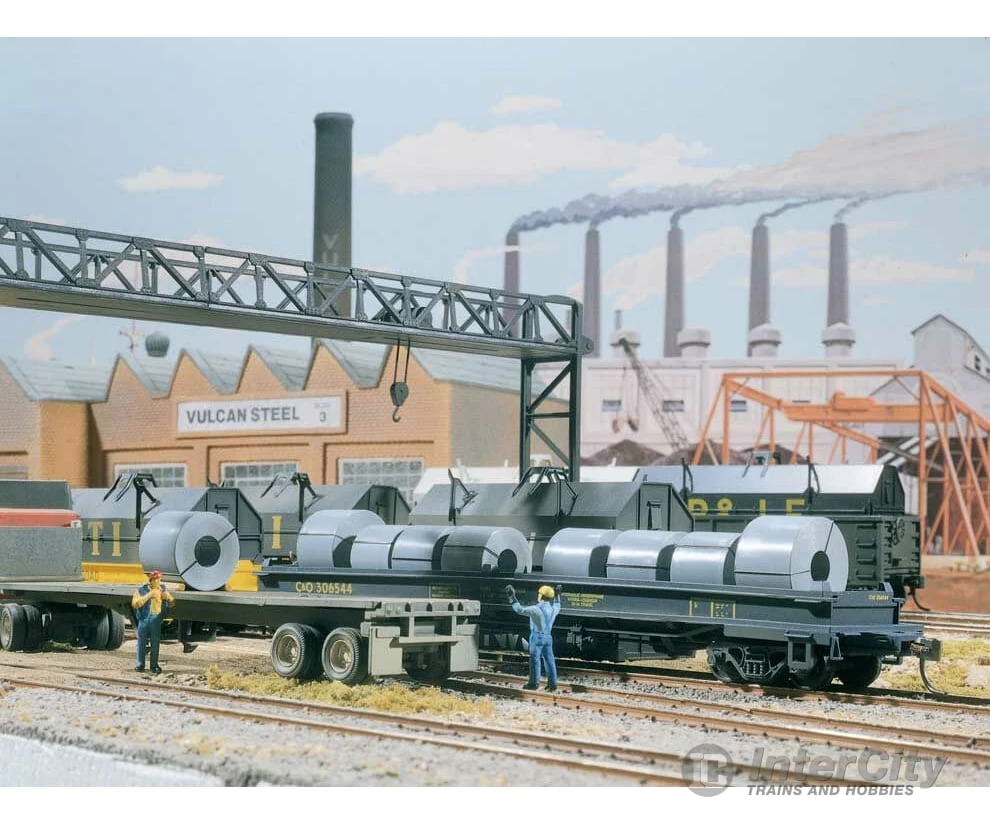 Load your steel service cars with this kit. Injection molded parts capture the look of the huge coils but are easy to build. Parts for twelve coils in two sizes are included.