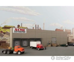 Model a big HO industry in a small space with the Cornerstone Modern Concrete Warehouse Background Building kit! Featuring special end walls measuring just 1-3/4″ (4.4cm) wide, this versatile structure kit builds into a perfect transition from 3-D to backdrop, and is ideal for shelf layouts, modules or dioramas wherever space is limited! With authentic tip-up style construction, it can be used other Walthers kits for easy customizing. Other features include: