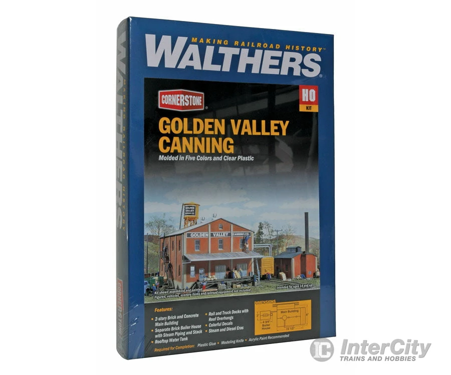 Walthers Cornerstone HO 3018 Golden Valley Canning Company — Kit – Main Building: 10-1/2 X 8″; Boiler House: 4-3/4 X 3″