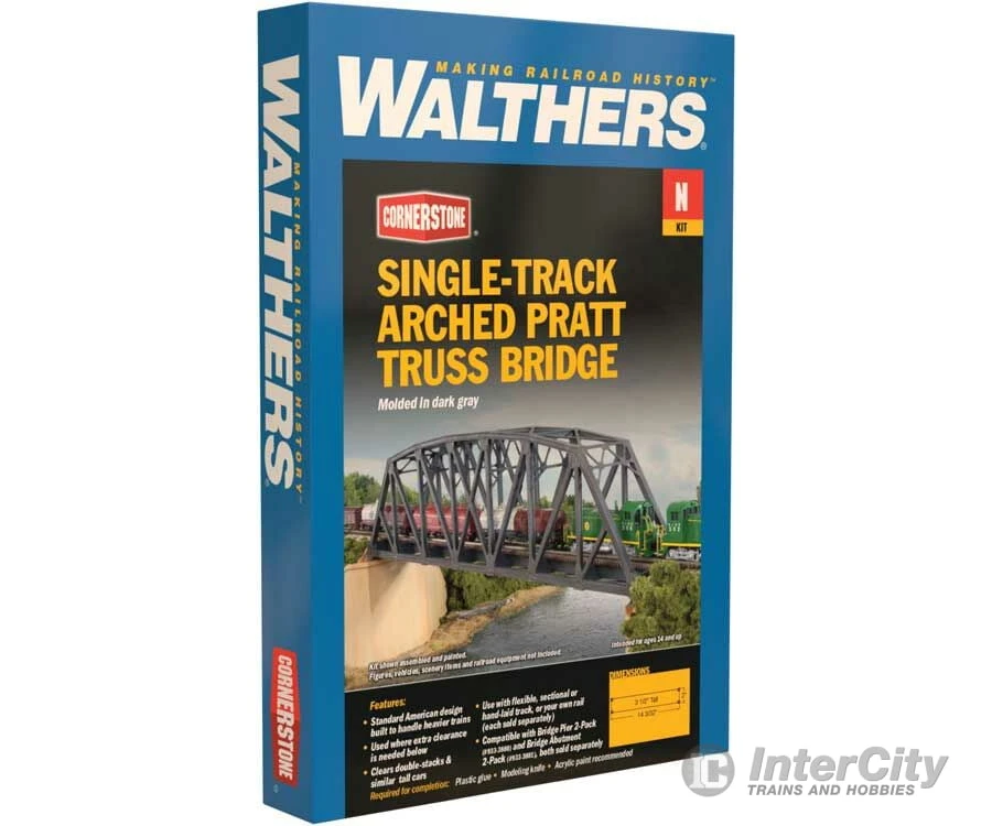 Walthers Cornerstone N 3870 Single-Track Arched Pratt Truss Bridge — Kit – 14-3/32 X 2 X 3-1/2″ 35.7 X 5 X 8.8cm