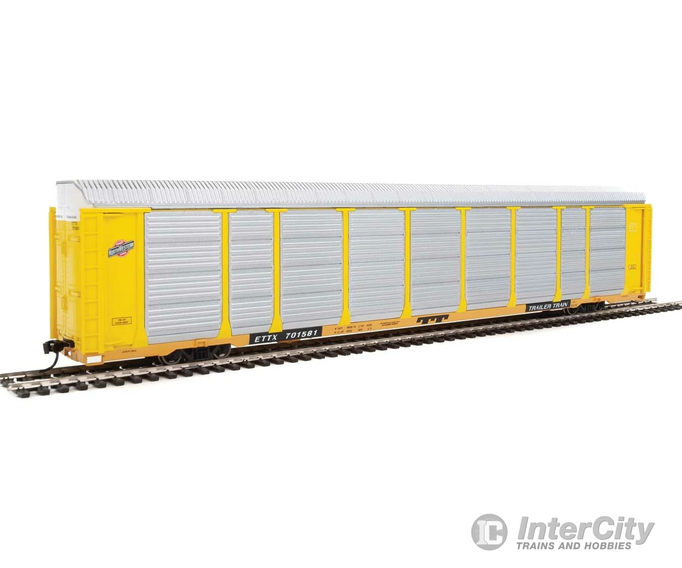 Walthers Life-Like HO 101418 89′ Thrall Enclosed Tri-Level Auto Carrier – Ready To Run — Chicago & North Western(TM) ETTX Flat #701581 (yellow, Silver)