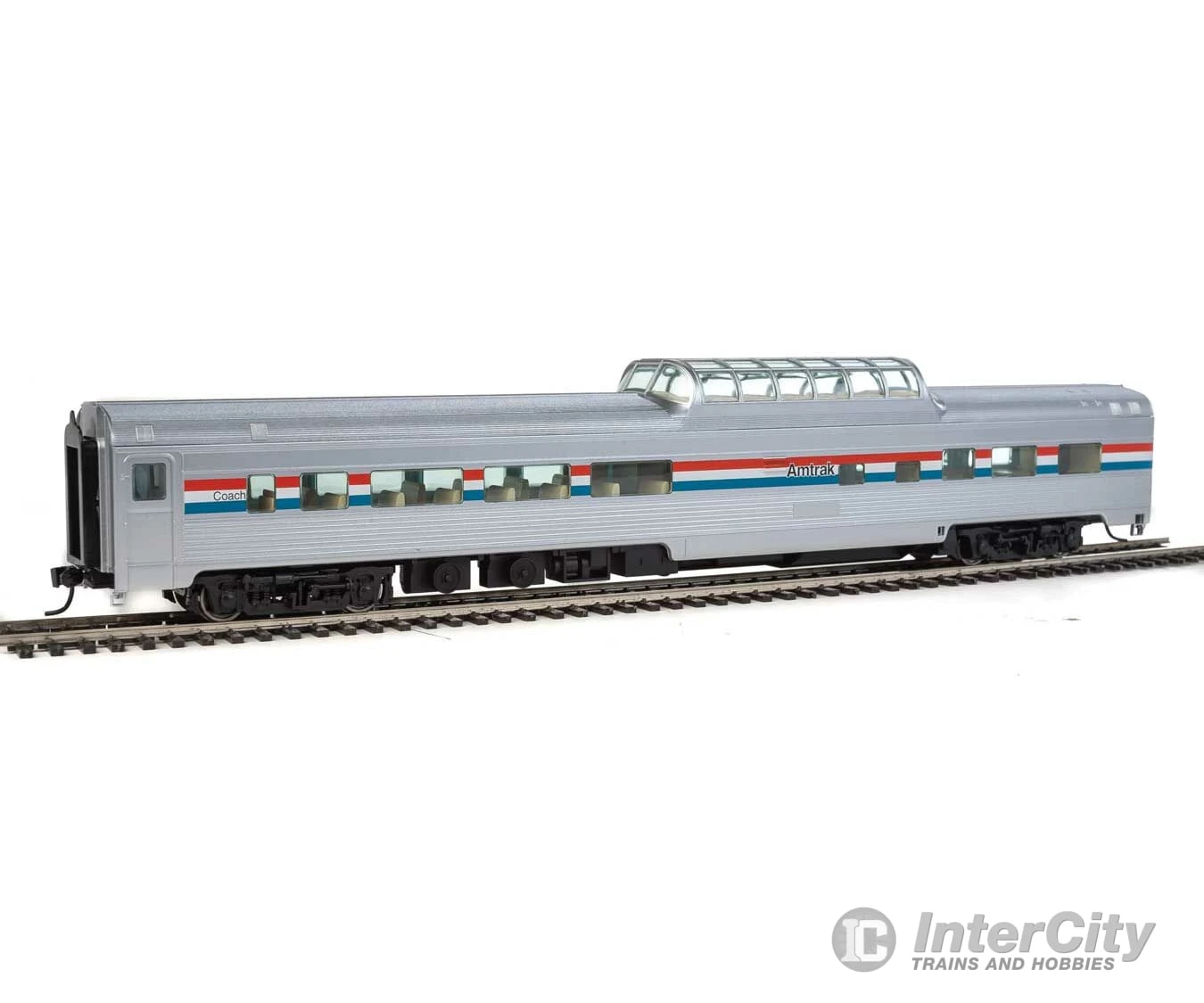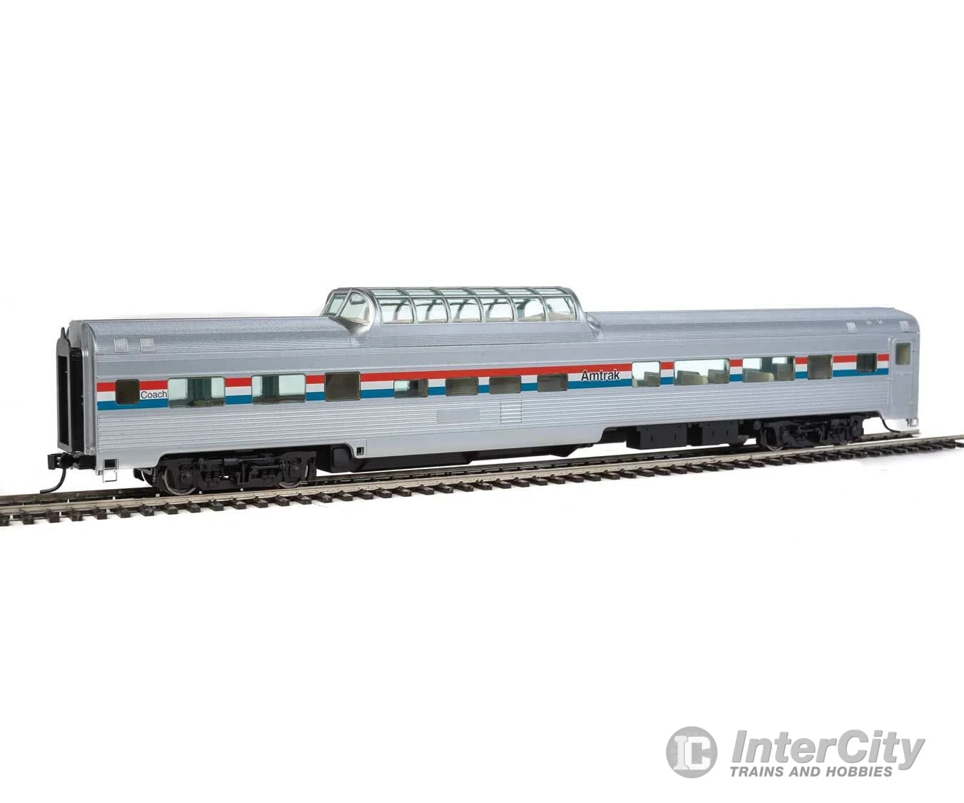 Provide passengers spectacular views of the scenery on your classic streamliner quickly and easily with this WalthersMainline HO Scale 85′ Budd Dome-Coach! Nicely detailed, affordably priced and built tough for years of dependable service, this car is based on fluted-side cars used my many North American railroads. 85′ Budd Dome-Coach are perfect for use with other WalthersMainline HO Scale streamlined passenger cars.