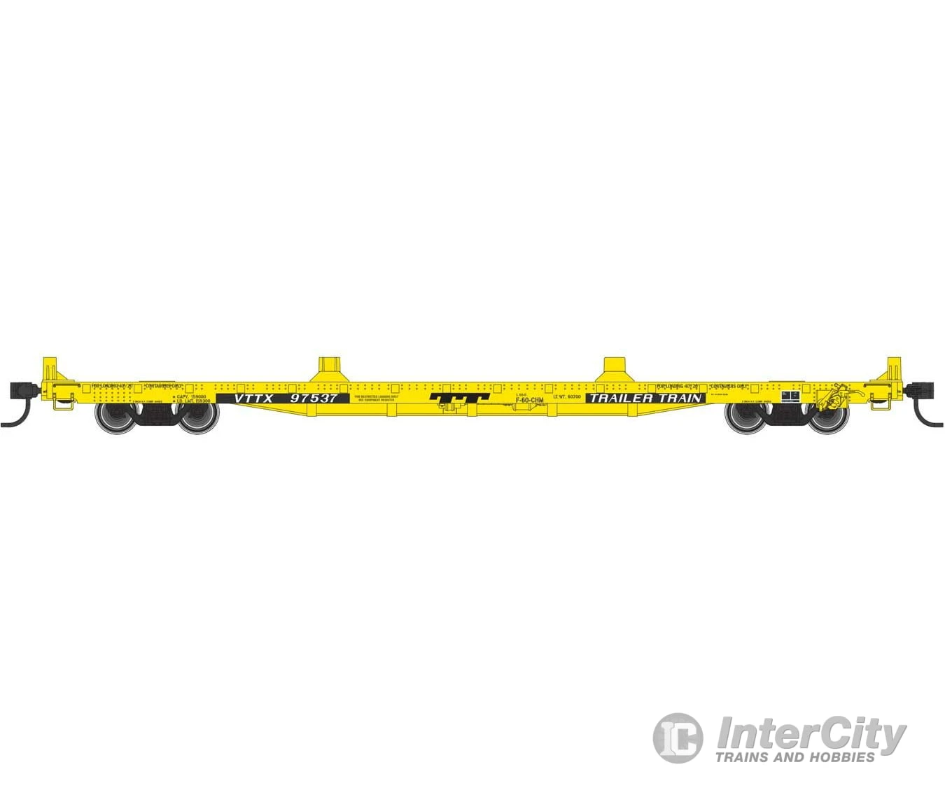 Walthers Mainline 5415 60′ Pullman-Standard Flatcar – Ready To Run — Trailer-Train VTTX #97537 (Container Loading; Yellow, Black TT Logo)