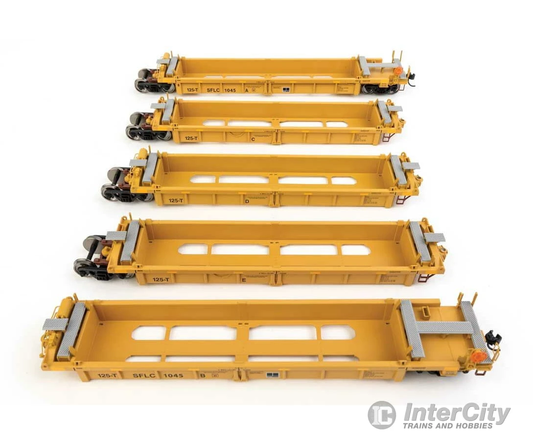 Modernize your HO Scale intermodal fleet in minutes with WaltherMainline Thrall Rebuilt 40′ Well Cars! As the 53′ container quickly became the standard for domestic shipping, older well cars built to carry 48′ boxes soon fell out of favor with railroads. Most were only a few years old, so starting in 2003 Thrall began a rebuilding program that shortened the wells to the standard 40′ on both single and five-unit cars. Today they can be seen carrying 20′ and 40′ containers in the well, with 40′ and 53′ units on top. Fully assembled and ready for service, the models feature: