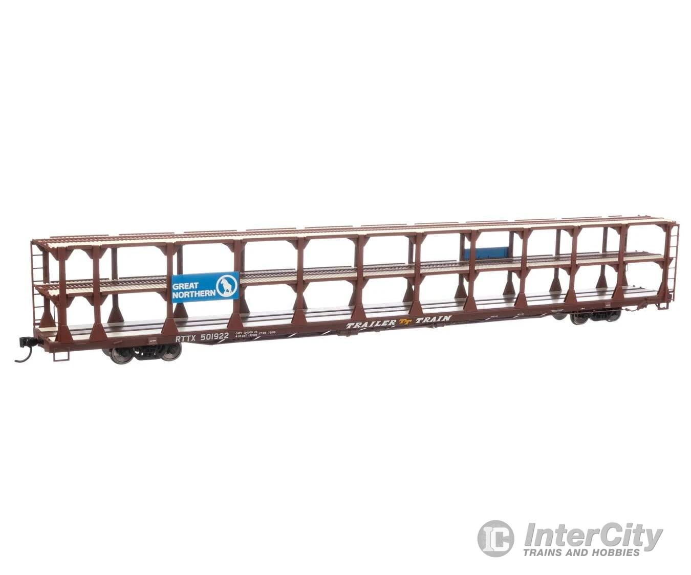 Walthers Mainline 8212 89′ Flatcar W/Tri-Level Open Auto Rack – Ready To Run — Great Northern Rack Trailer-Train Flatcar RTTX #501922 (brown)