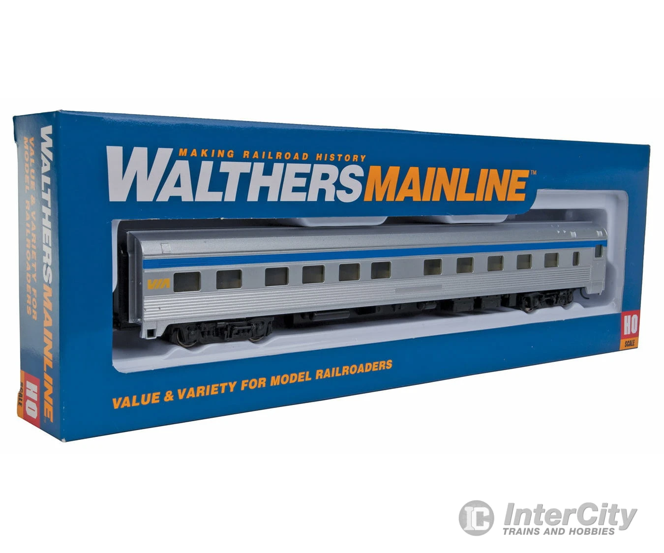 Walthers Mainline HO 30109 85′ Budd 10-6 Sleeper – Ready To Run — Via Rail Canada (silver, Blue, Yellow)