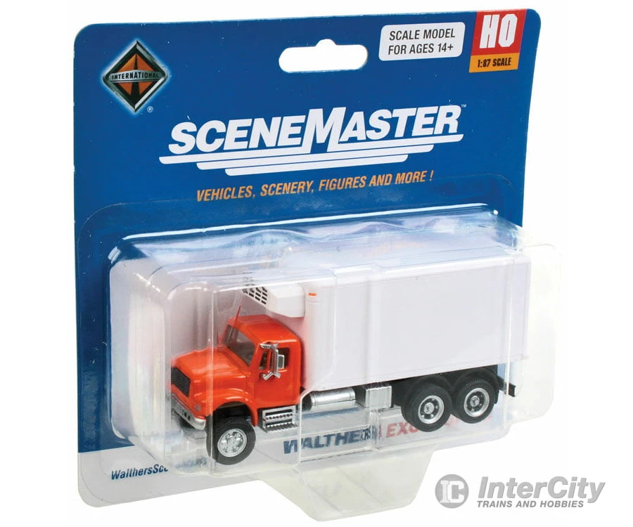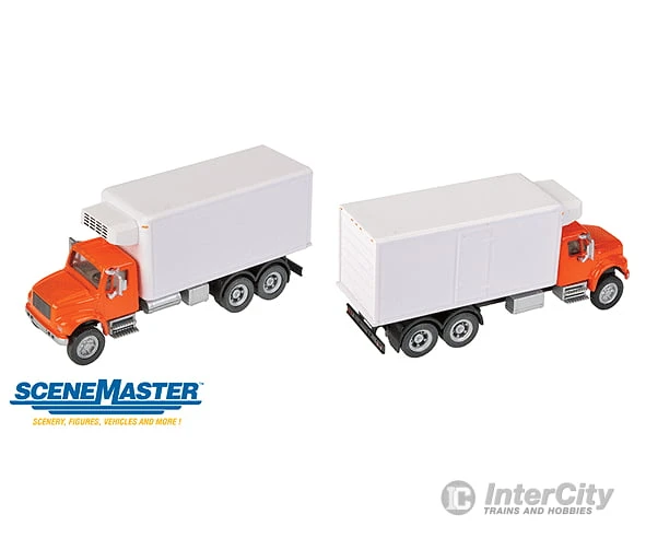 Walthers SceneMaster 11393 International(R) 4900 Dual-Axle Refrigerated Van – Assembled — Orange Cab, White Body