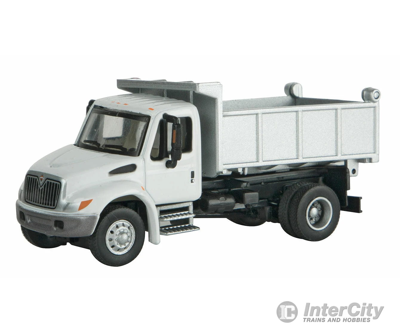 Walthers SceneMaster 11635 International(R) 4300 Single-Axle Dump Truck – Assembled — White W/Railroad Maintenance-of-Way Logo Decals