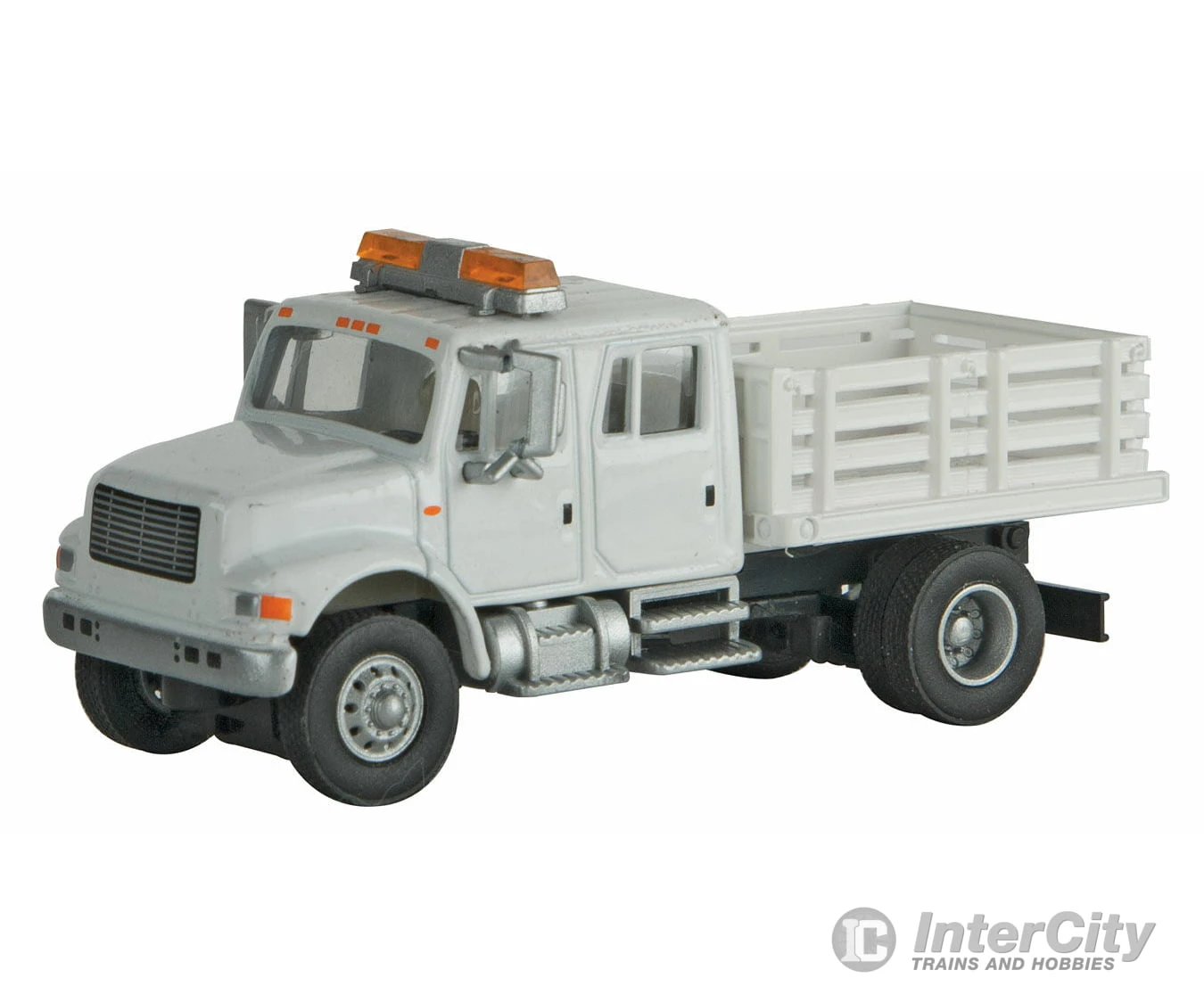 Walthers SceneMaster 11894 International(R) 4900 Open Stake Bed Utility Truck – Assembled — White W/Railroad Maintenance-of-Way Logo Decals