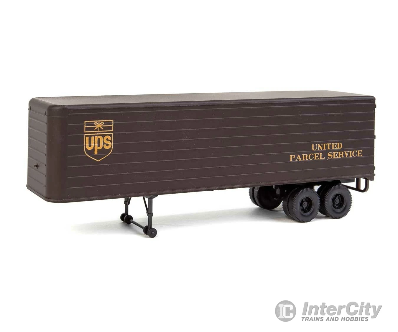 Expand UPS(R) service anywhere along your HO layout with this SceneMaster Fluted Side Trailer 2-Pack! Highly detailed and perfect for layout or collection, it’s based on equipment used by United Parcel Service in the 1950s and 1960s. The set includes two trailers finished in the correct brown, with the original bow tie logo and United Parcel Service lettering in gold. Optional landing gear in the up (transport) and down (parked) positions is also included.