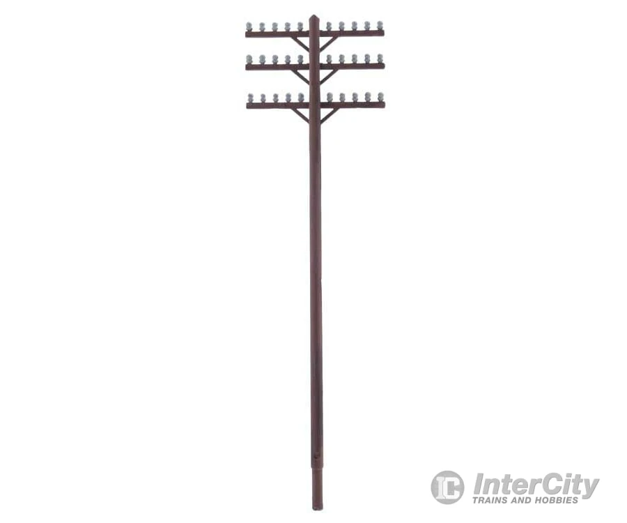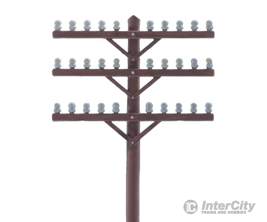 Transform your steam-, diesel- or modern-era right-of-way with the SceneMaster Telegraph Poles and Crossarms kit in HO. Typical of the line poles that carried signal, phone and telegraph wires for railroads and private firms, they can still be seen trackside today. The kit features plastic parts molded in a gray-brown “wood” color, and includes 10 poles with two molded crossarms, plus 20 add-on crossarms for easy customizing.
