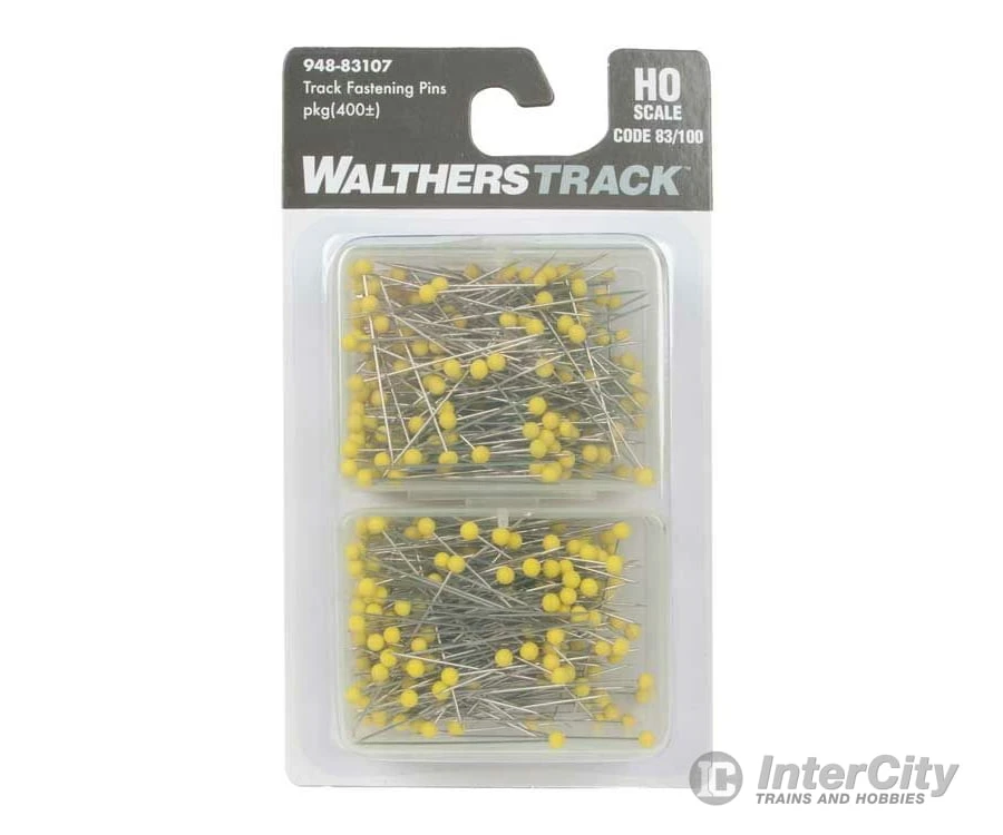 Make your next WalthersTrack project easier with these Track Pins! Designed to fit the spike holes molded on each tie, use them to temporarily hold and align Code 83 or Code 100 track products (sold separately) during construction. Easy to handle and use, each measures about 1-3/4″ long (44mm), and the pack includes about 400 pins, perfect for big projects.