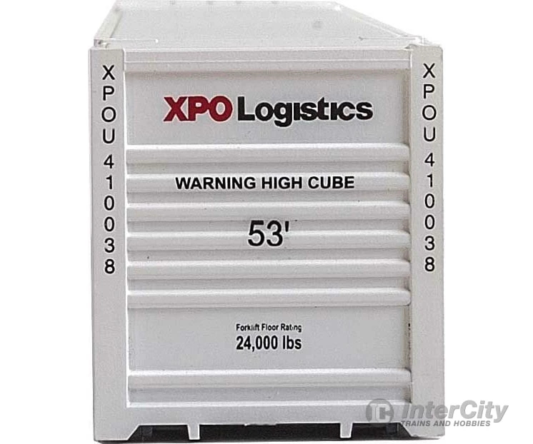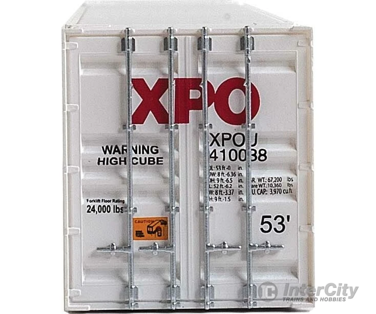 Walthers SceneMaster 8531 53′ Singamas Corrugated-Side Container – Assembled — XPO Logistics (white, Black, Red)