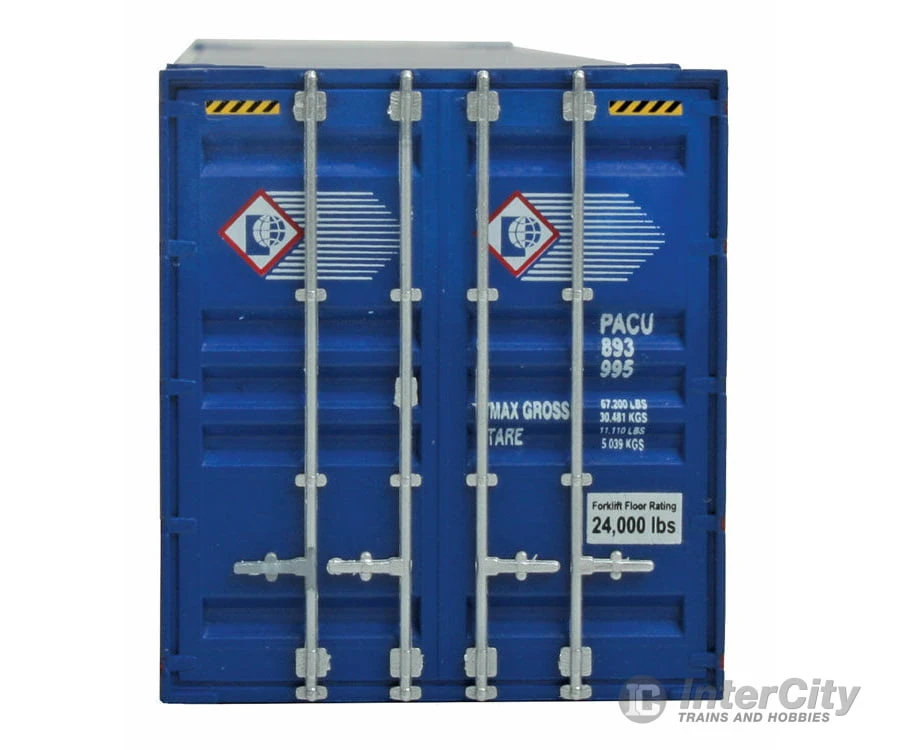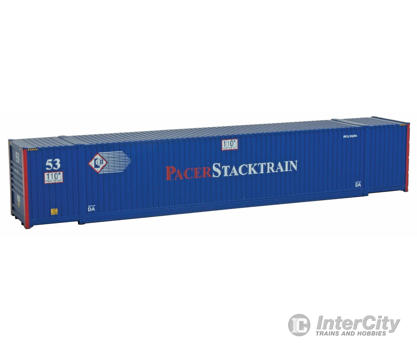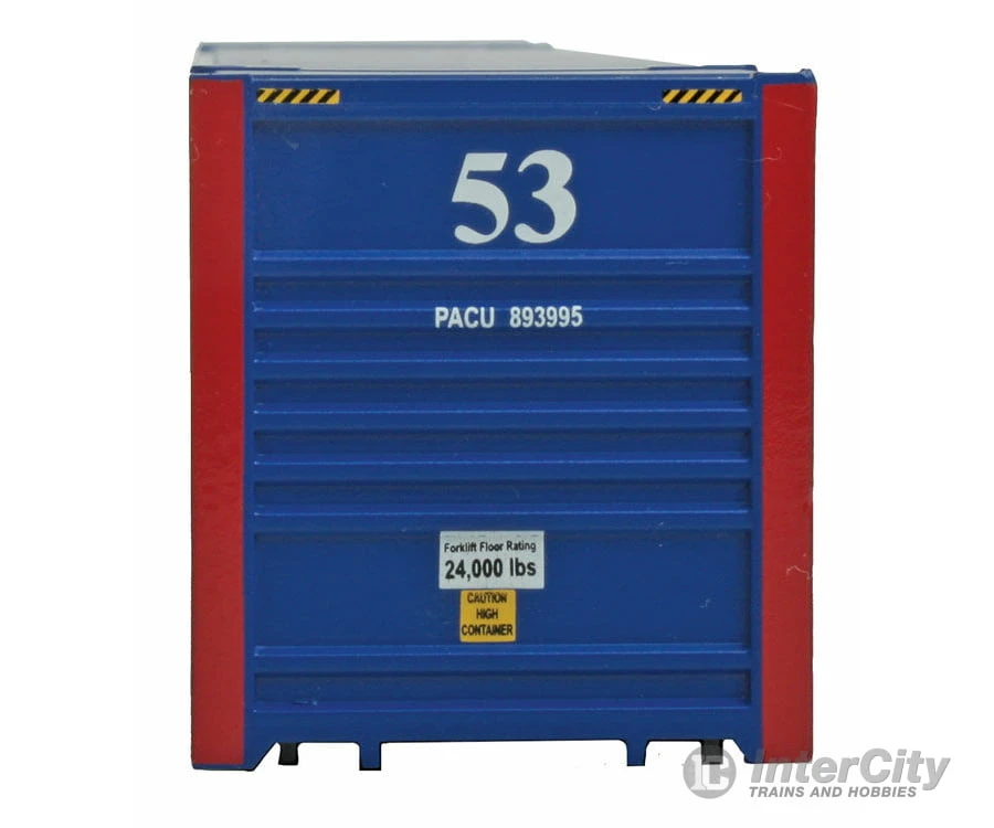 Walthers Scenemaster HO 8507 53′ Singamas Corrugated Side Container – Ready To Run — Pacer Stacktrain (blue, White, Red)